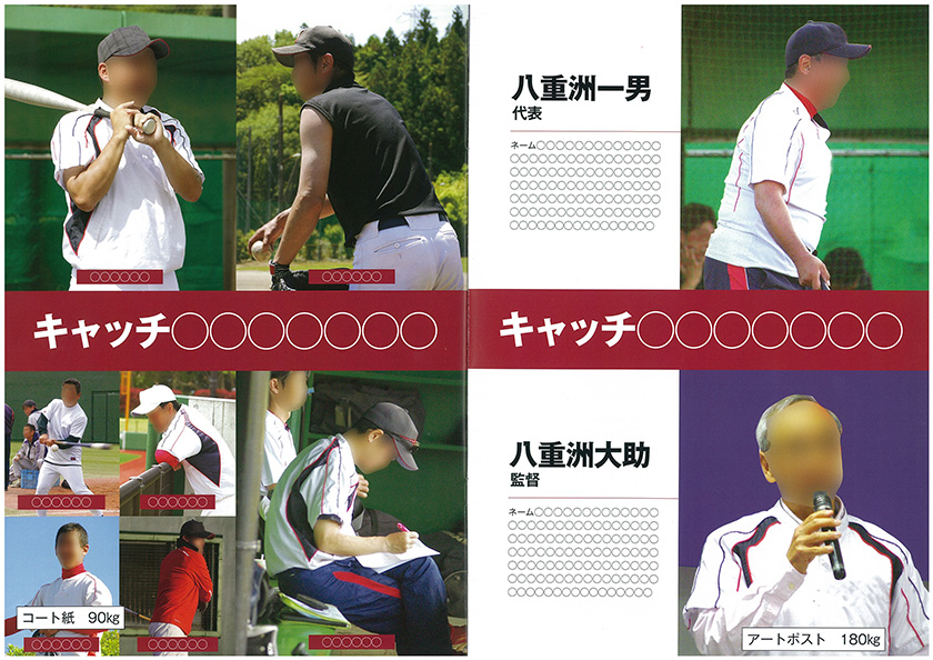 各ページのレイアウト等の詳細をご相談させていただき、必要な写真・原稿・チームロゴ等の素材をご用意いただきます。(データの詳細や送付方法は別途ご相談)